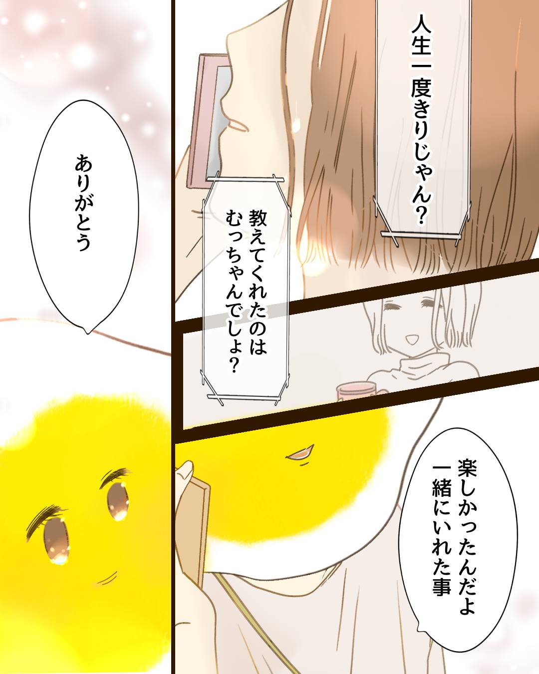 むっちゃんが多少なりとも変わったからこそ言えた言葉でしたけど。そうでなければ区切りさえつけられなかったかも。